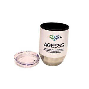 Cette tasse élégante au fini satiné blanc à l'extérieur et au brillant doux à l'intérieur ajoutera une touche de sophistication à votre quotidien. D'une hauteur de 3,5", elle est idéale pour savourer vos boissons préférées. Cette tasse peut contenir jusqu'à 450 ml. de liquide. Extérieur blanc mat et logo de l’AGESSS en bleu. L’intérieur de la tasse est bleu. Cette tasse peut aller au micro-ondes. Pour préserver sa beauté, un lavage à la main est recommandé.